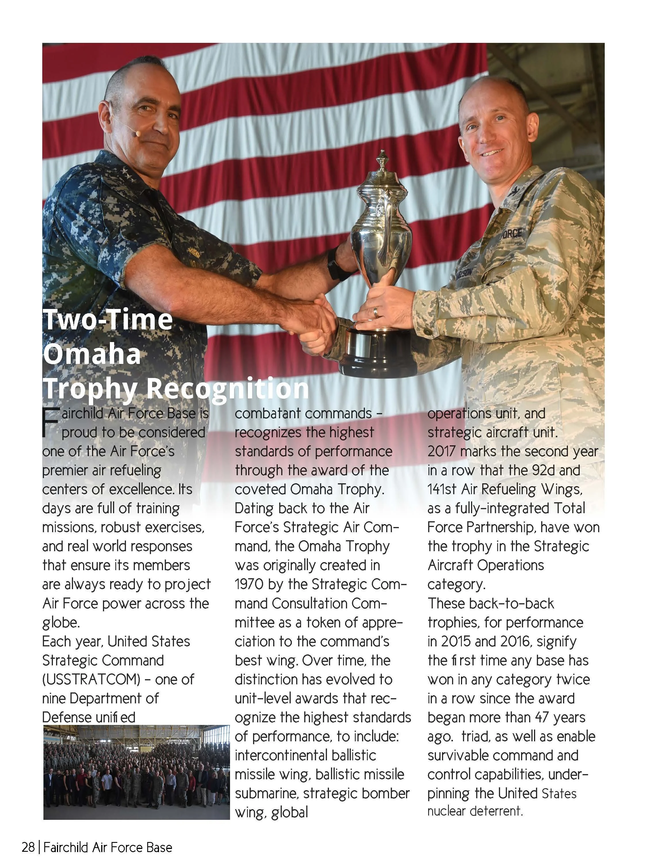 The 75th Anniversary of Fairchild AFB was celebrated in a festival of events and educational experiences for the community, culminating in a formal ball. The Fairchild Annual was developed as a gift for all attendees.